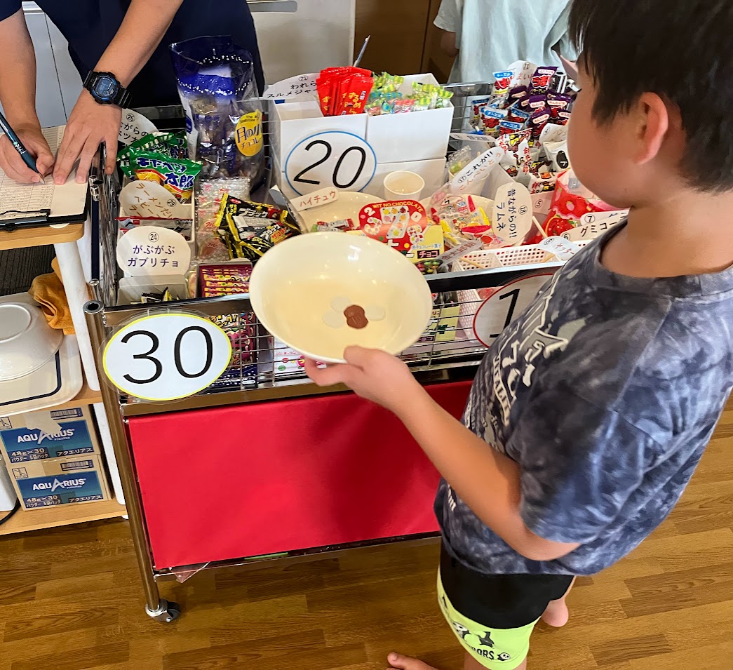 自分たちでお金の計算をしながらお菓子を購入するので、計算の練習にもなっています