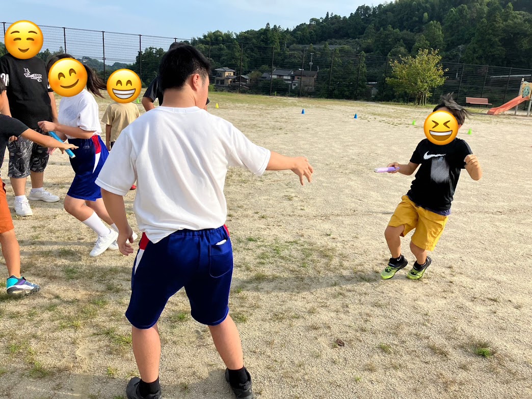 今回は、サッカー教室にてウォーミングアップの場面をお届けします😉チーム対抗でリレーをし、負けたチームが変顔をしながらグラウンドを3周走るというルールを決めました!