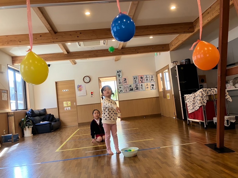 こんにちは!今回は児童発達で「風船まとあて」といって吊り下げられた風船にボールを当てるゲームを行いました🎈