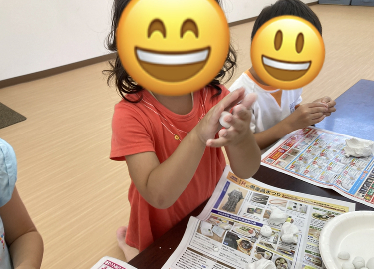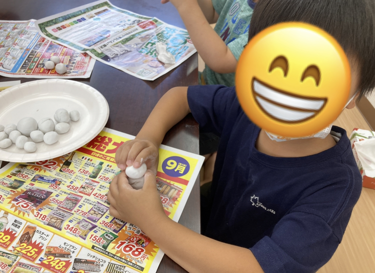 児童発達支援の子どもたちみんなで、紙粘土を使ってお月見団子を作りました‼️