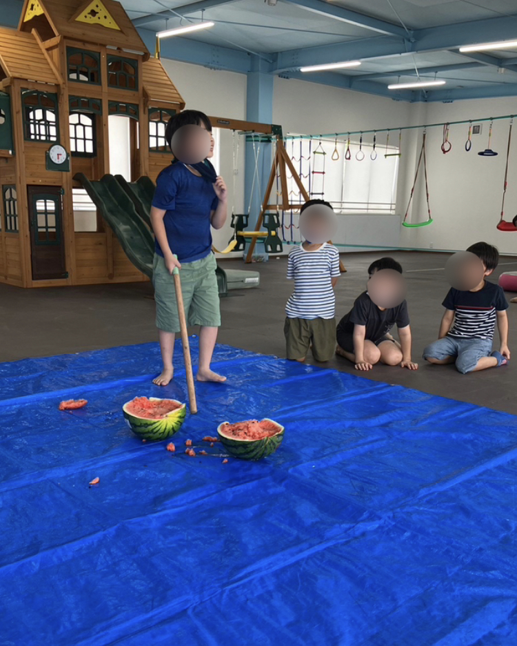 お腹いっぱいスイカを食べて、心も体も大満足の子どもたちでした😊