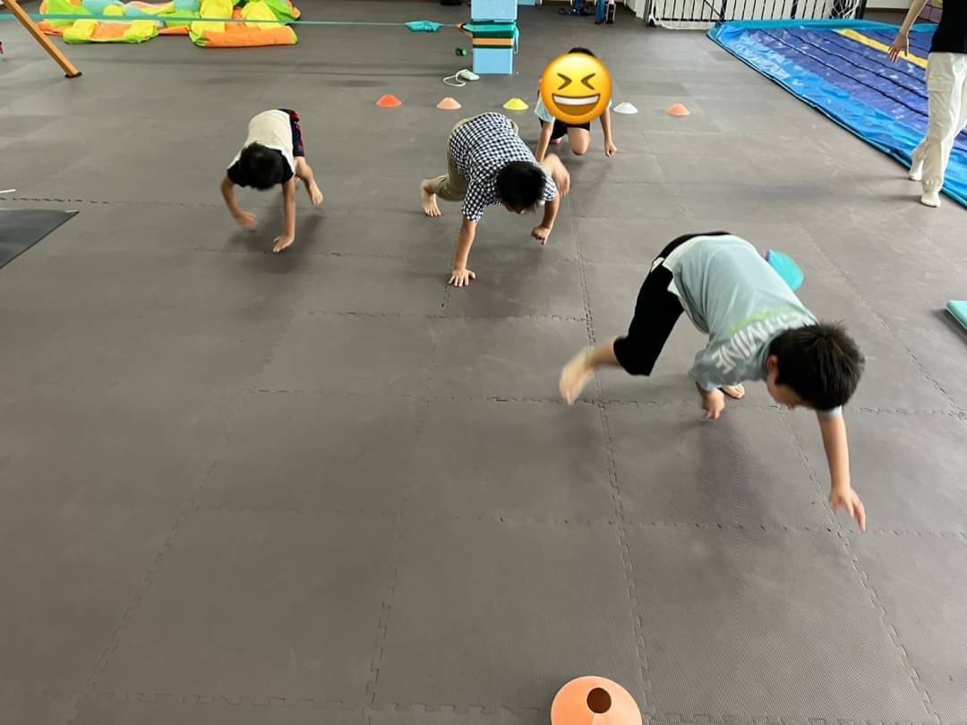 本日は公園外出の予定でしたが、悪天候のため、プレイルームで身体を動かすゲームを行いました😆