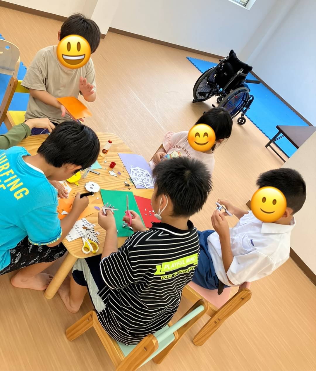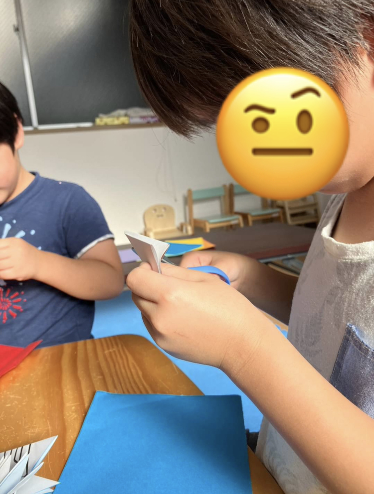 折り紙でカボチャを折ったり、クモや蜘蛛の巣をハサミで上手に切り取ったりしています🕸