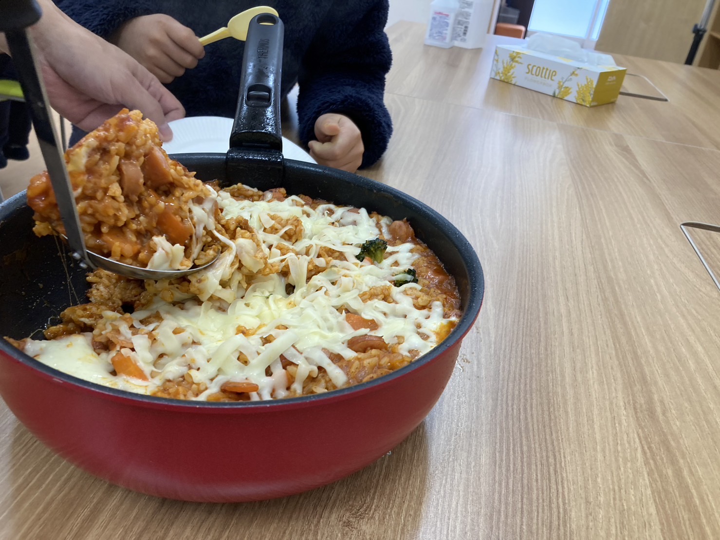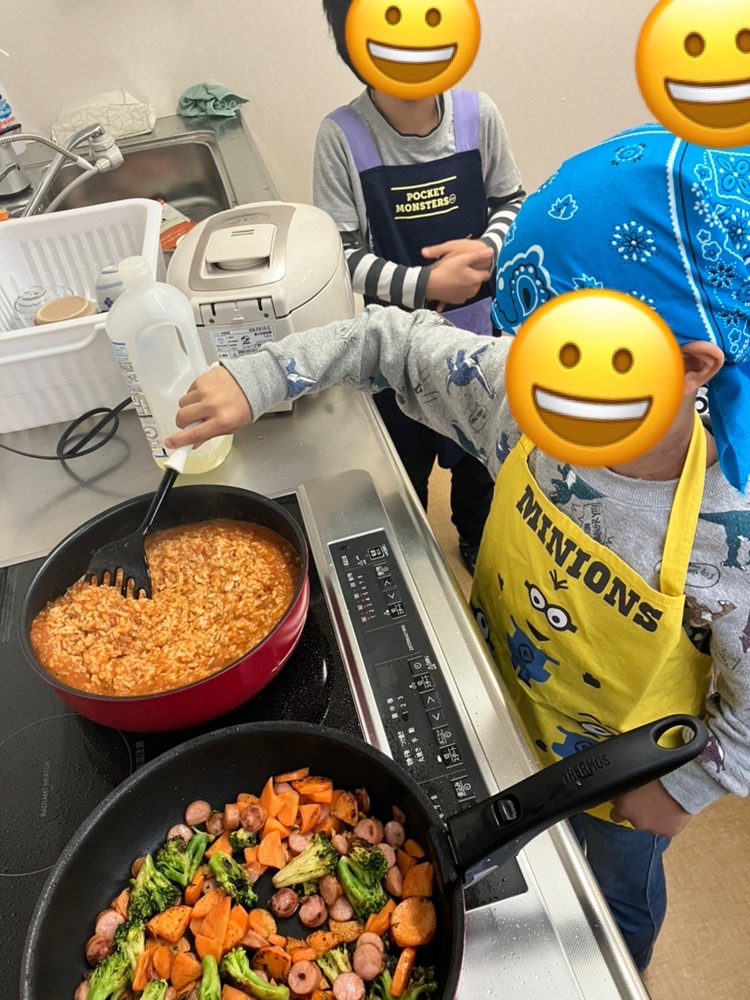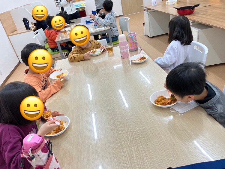 アツアツの出来上がりを皆んなで美味しく頂きました。🍴かなり美味しかったらしく、全員がおかわりをしていました。中には4杯もおかわりをするお子様もいらっしゃいました😁