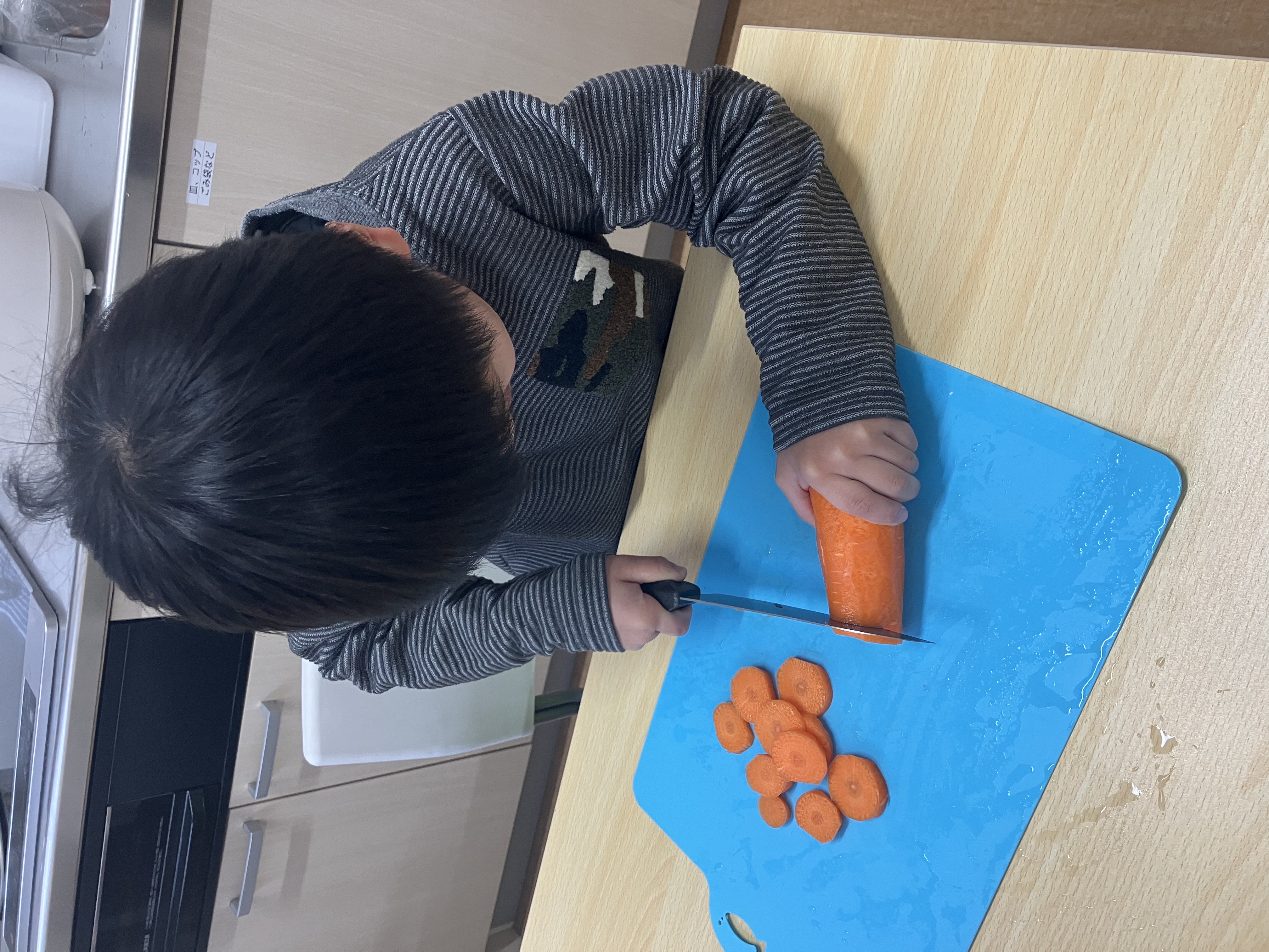 皆で野菜やソーセージを切り、下ごしらえをして、クッキングしました。🥓