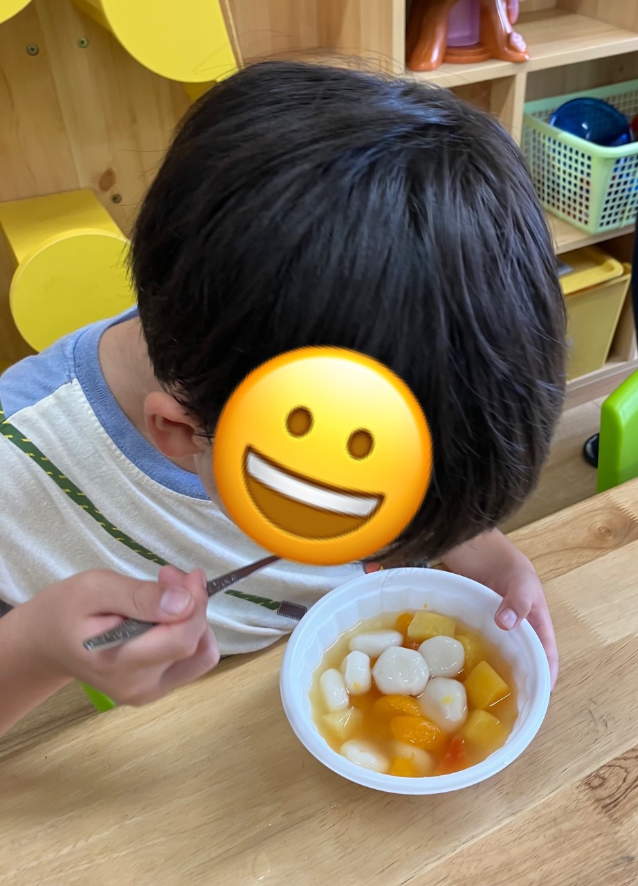 たくさん体を動かした後に冷たいフルーツポンチを食べましたよ♪