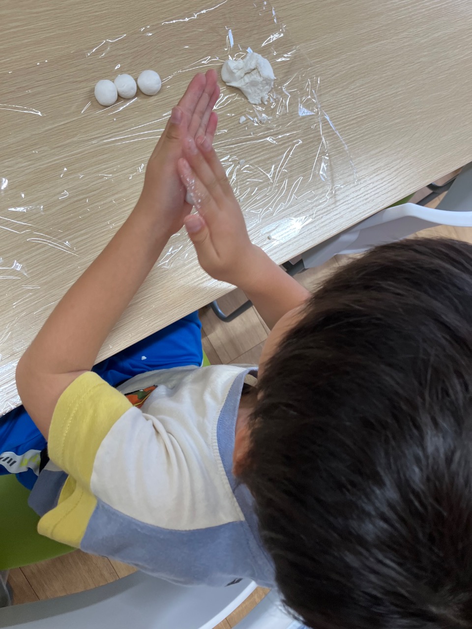 仕上げのシロップを注いだりと、お友達と協力しながら完成させてくれました。
