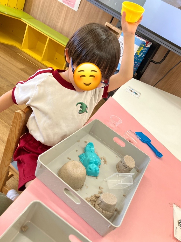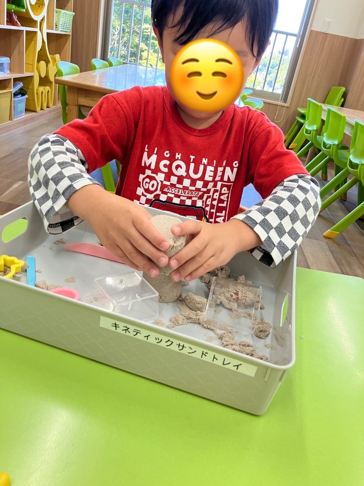 粘土とはまた違い、砂のようなサラサラとした感触が気持ちよく、集中して取り組んでいたお友達^^