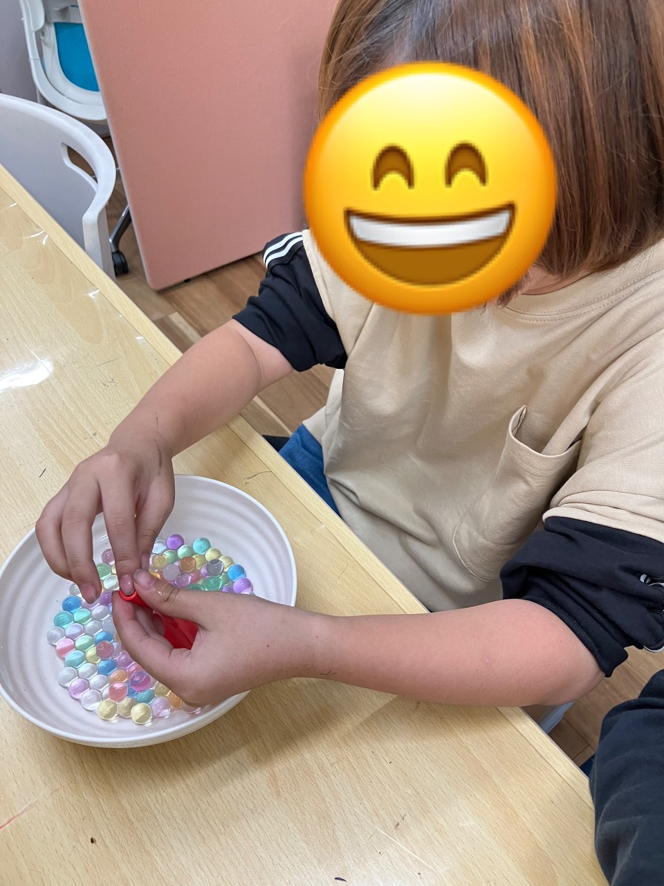 本日3年生以上のお友達は、ぷよぷよボールを使って『スクイーズ』作りを行いました♪