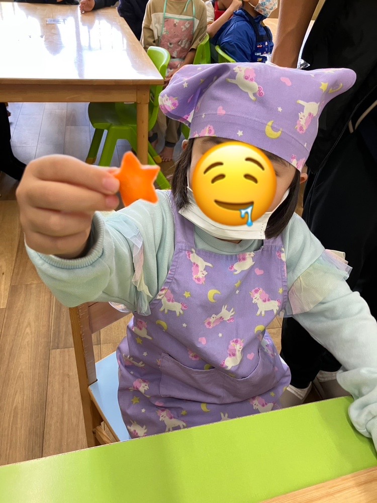 お買い物から帰ってきた後は、全員でニンジンとジャガイモの型抜きにチャレンジしました♪