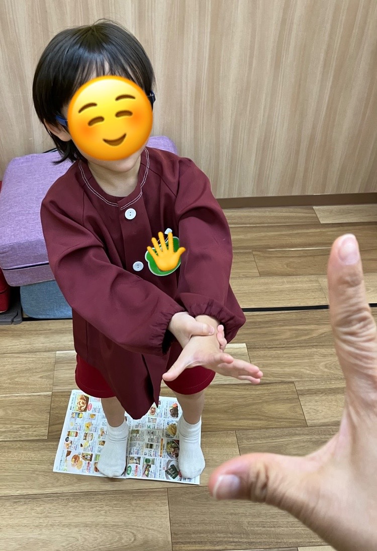 新聞紙が小さくなると上手に片足立ちでバランスをとるお友達^^