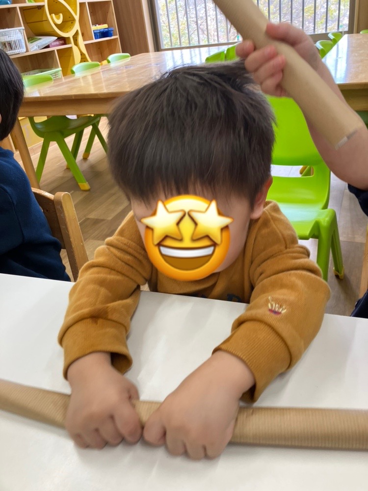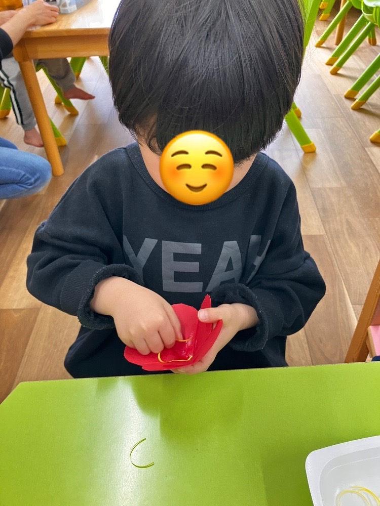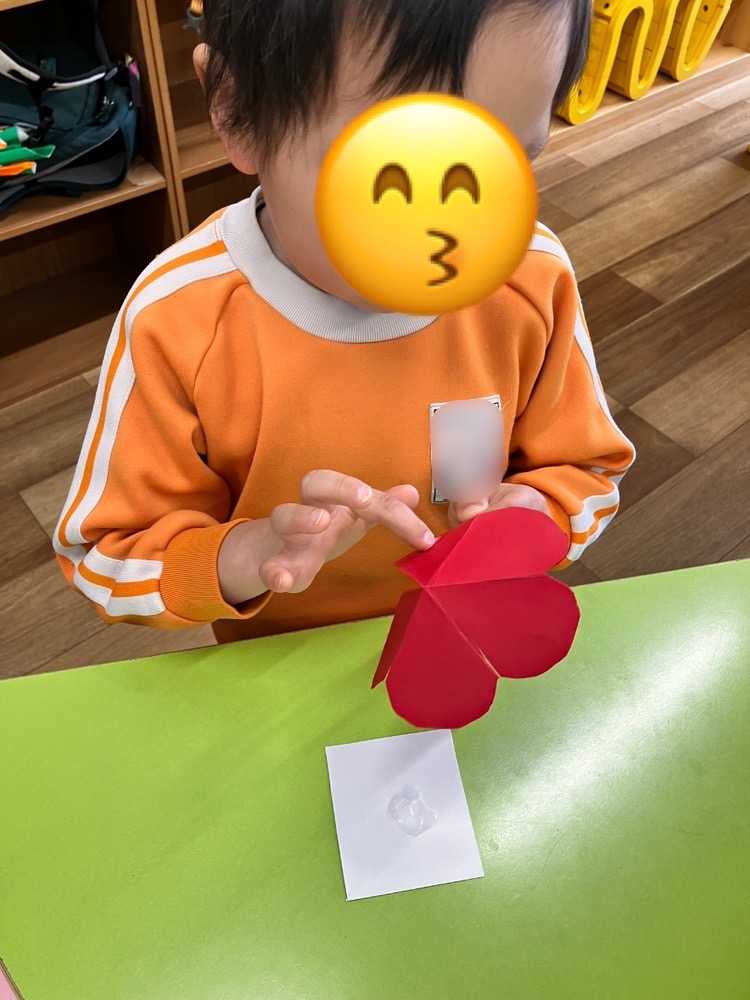 大きいお友達には梅の花を作ってもらい、ハサミや糊付けの工程を担当していただきました✂️