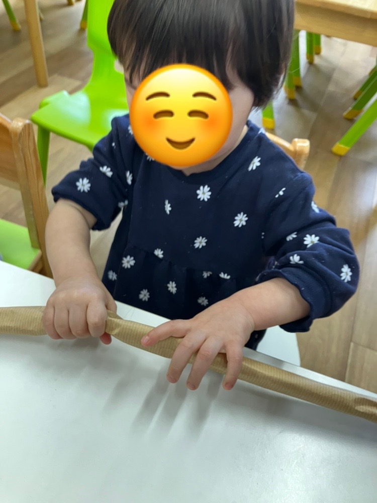 年齢が小さいお友達は木の枝の部分をクシャクシャ👐紙の感触を楽しみながら活動に参加しました✨