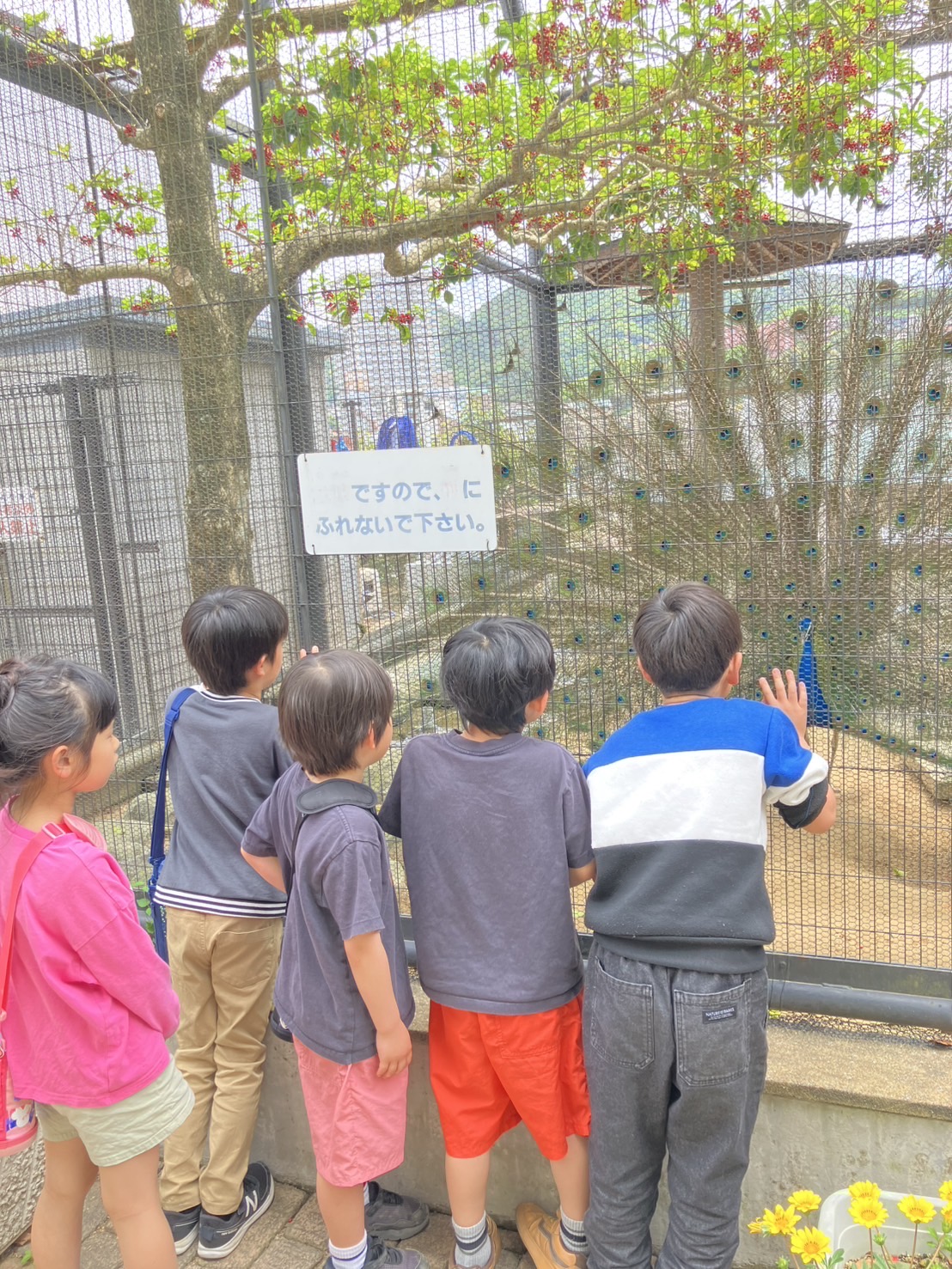 クジャク🦚や馬🐴、白鳥🦢など様々な動物に大喜びのお友達✨ 「なる~‼︎」とお猿さんの名前をみんなで呼ぶ姿に微笑ましく思いました🐒