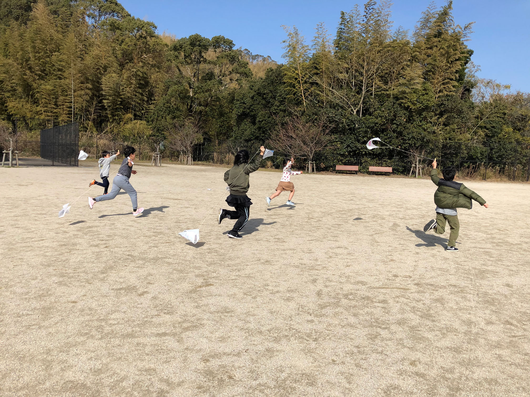 昔ながらのたこを一から自分たちで作り、公園にあげに行きました。