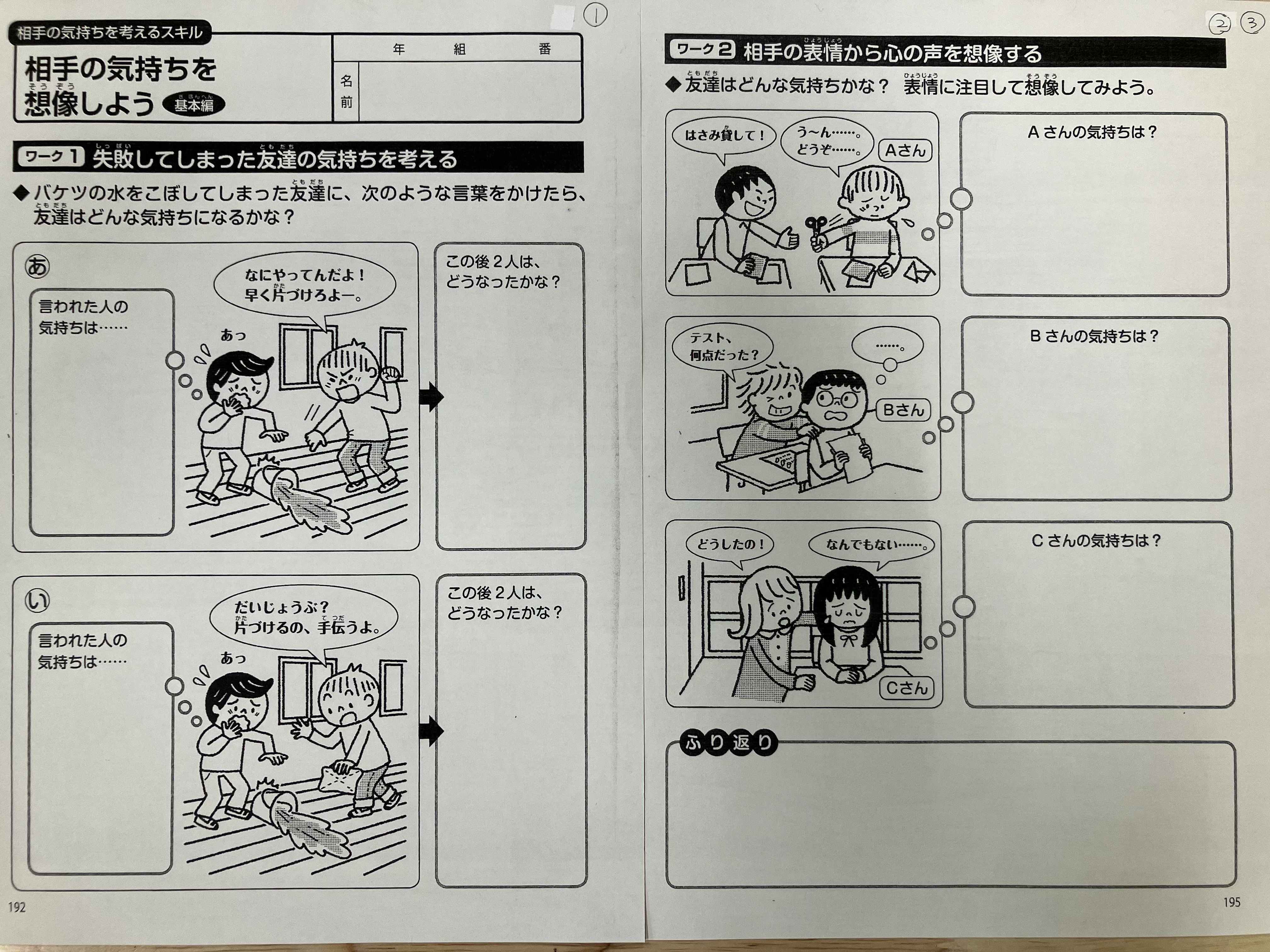 その様な状況で表面上の「ことば」だけでなく相手の表情や声のトーン、状況等から相手の気持ちはどうなのかと言う事を考える事が重要になってくると思われるので様々なシチュエーションで相手はどう思っているのかと言う事をみんなで話し合いました。