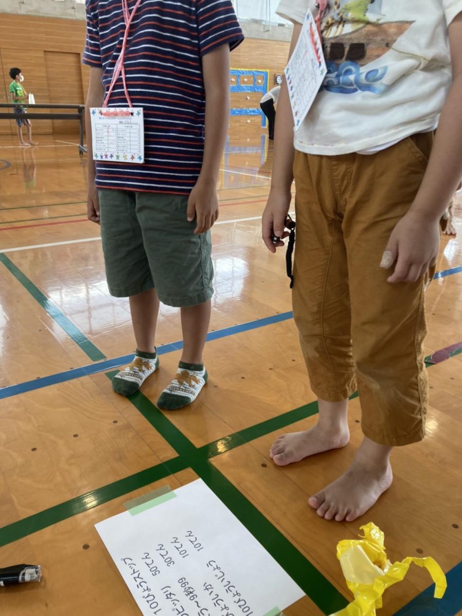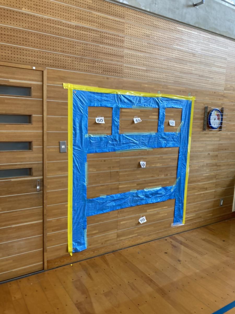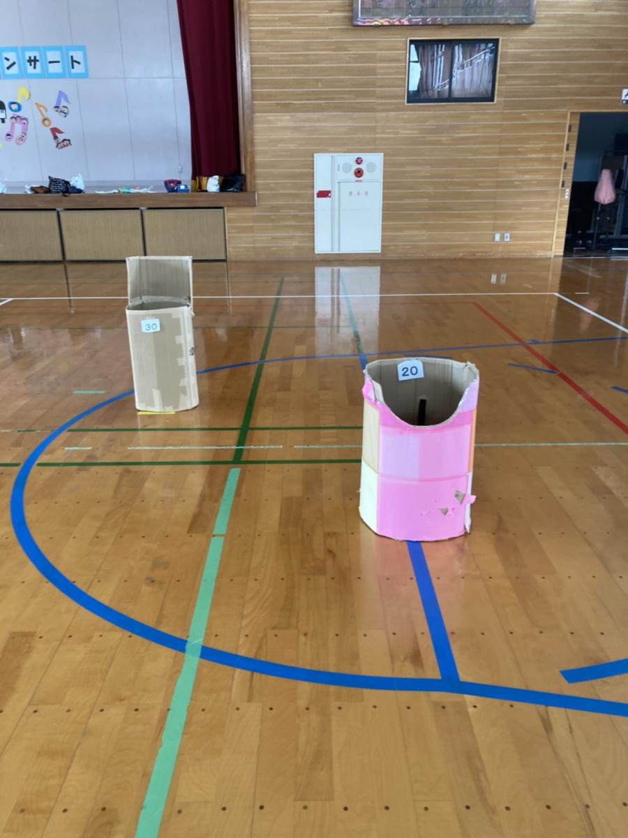 ・紙飛行機が出来たらスタートラインから飛ばしていく。身長や体力差を無くす為に飛距離を争うのではなく着地点での得点を競うようにする。