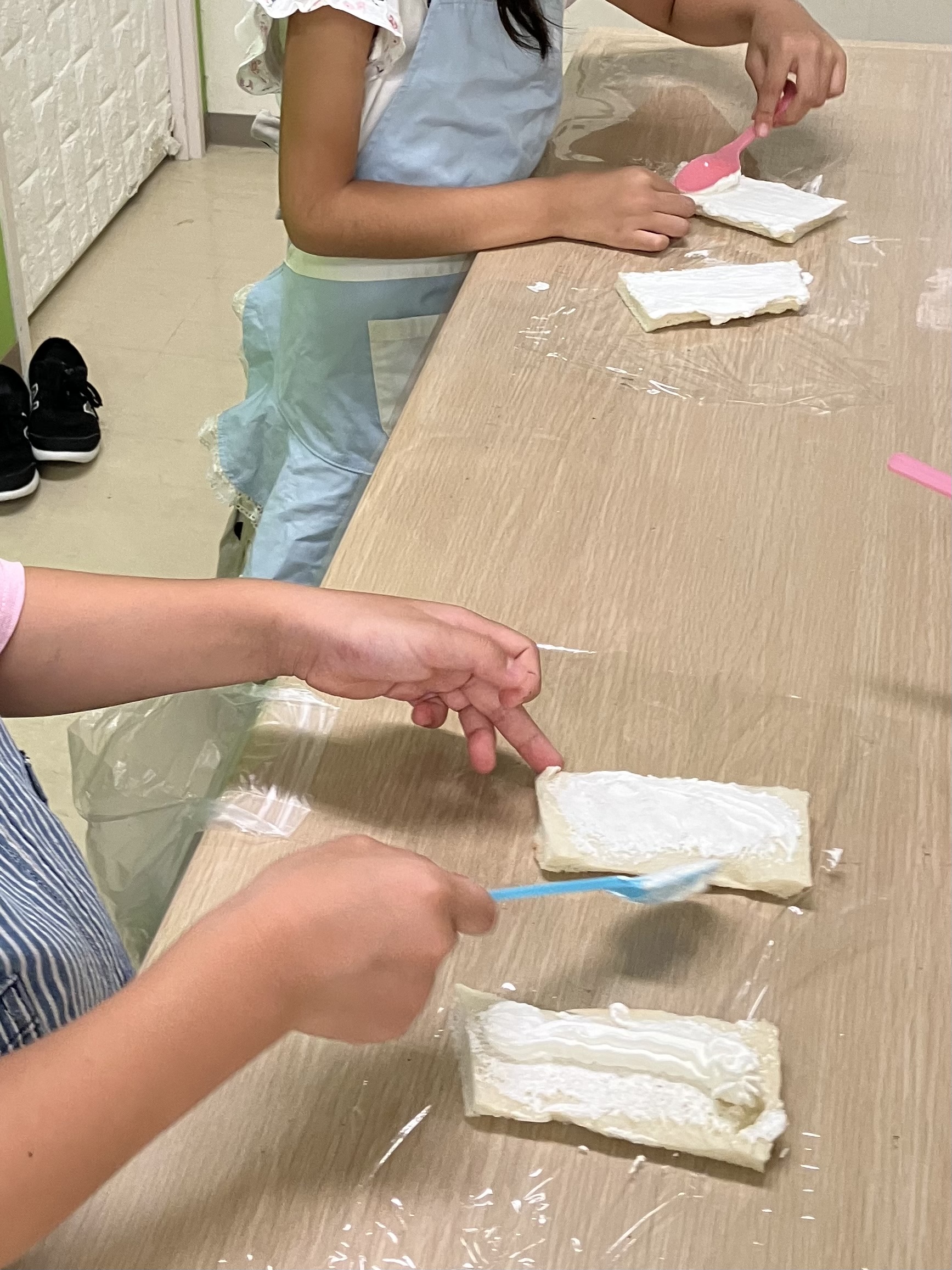 食パンに生クリームを塗っている時には「先生もう食べていい?」と待ちきれない様子でした😁