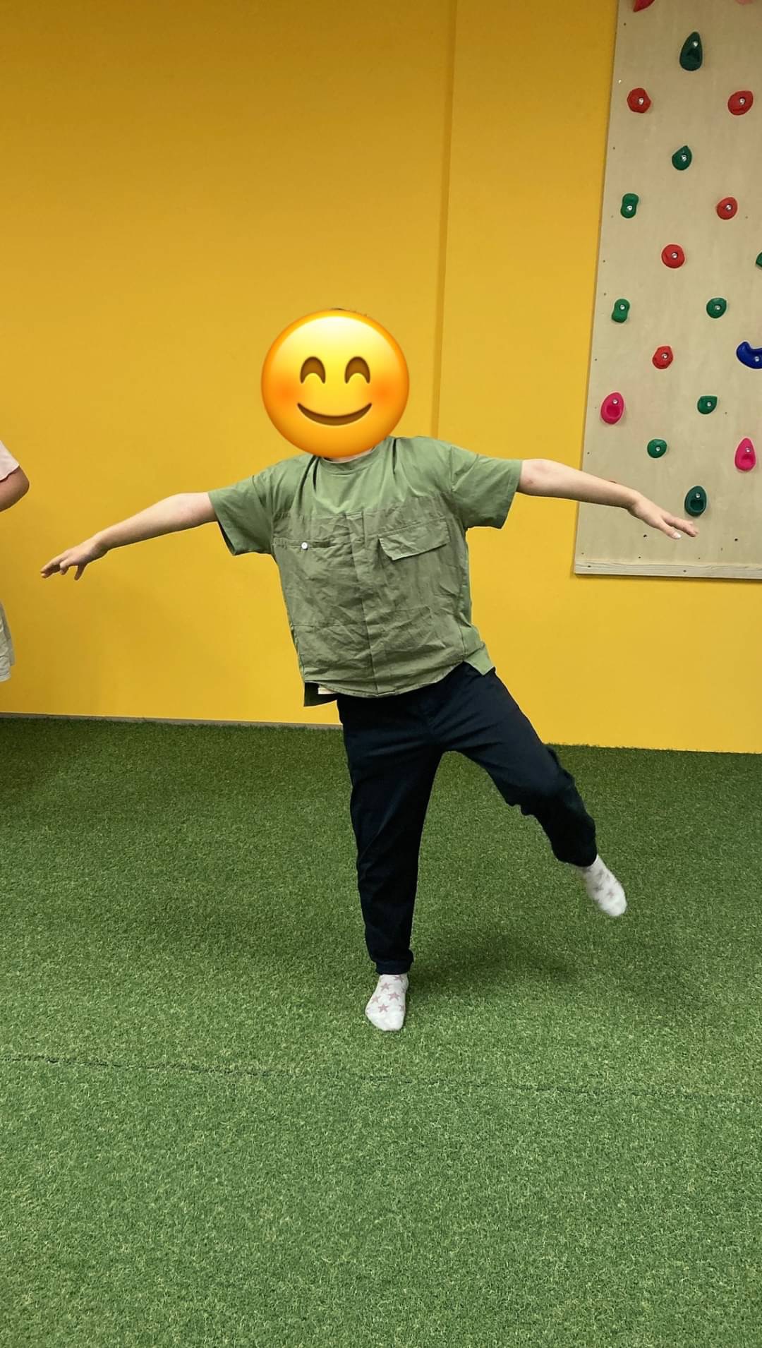 「左足だけで立つの難しいなぁ😦」