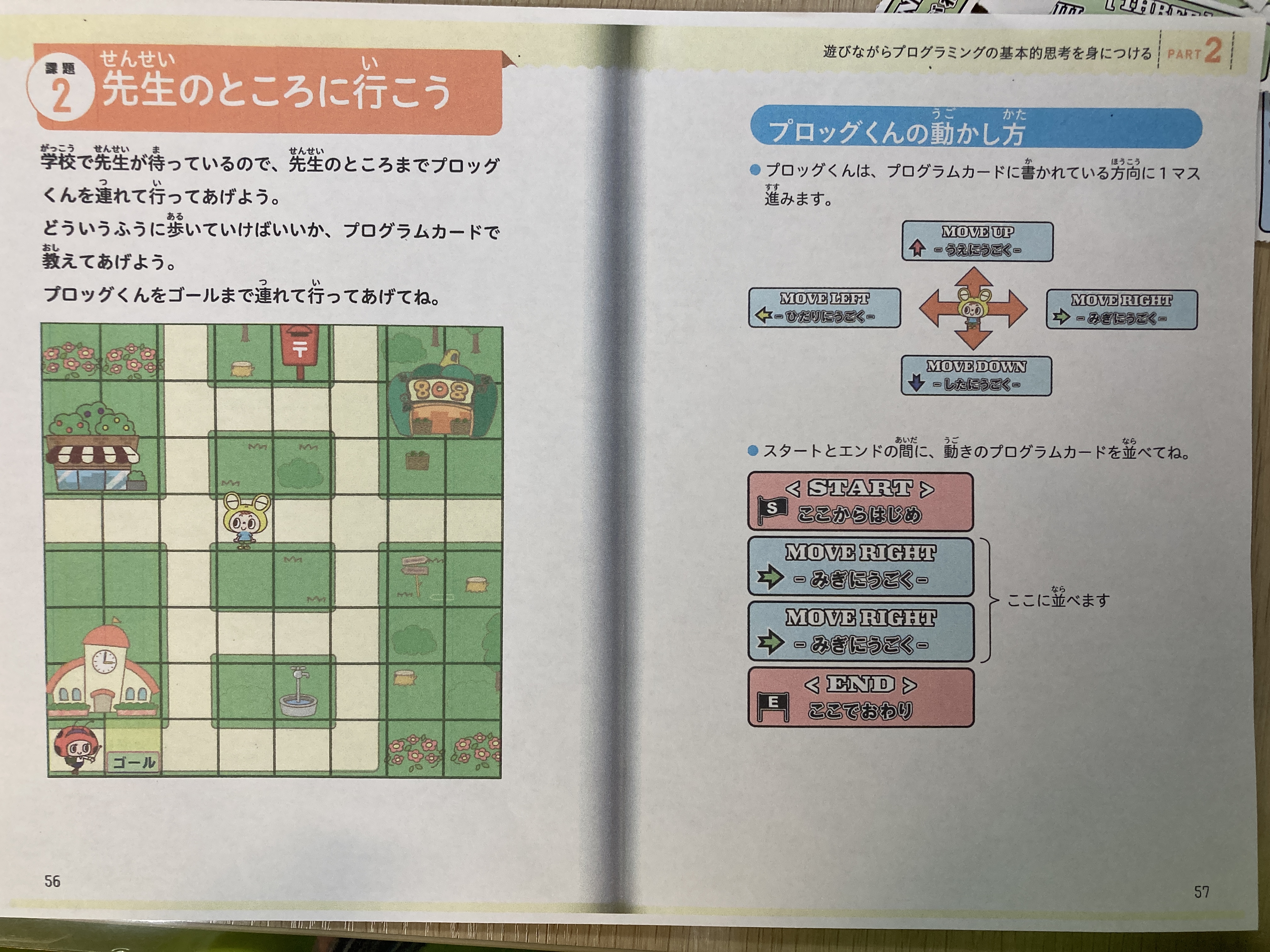 指令を理解し、ゴールに辿り着くにはどのカードを使ったら良いかを考え、並べます