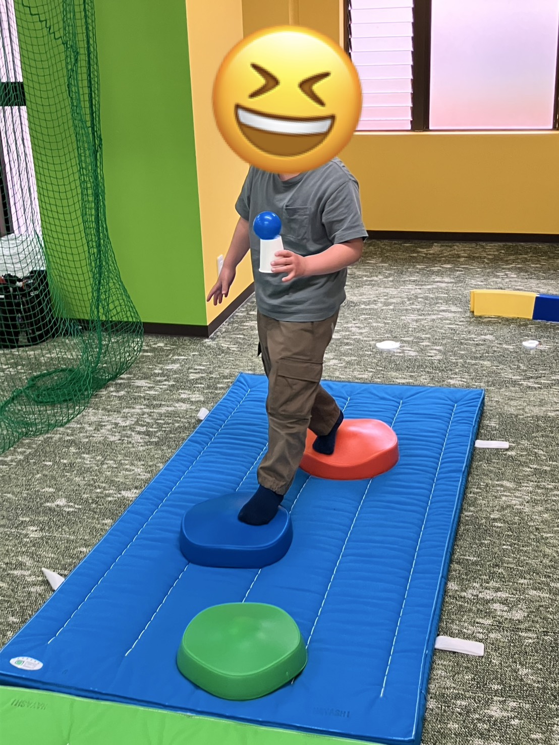 紙コップの上にカラーボールを乗せて、落とさないようにサーキットを行うという内容でした✨