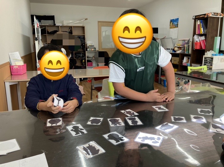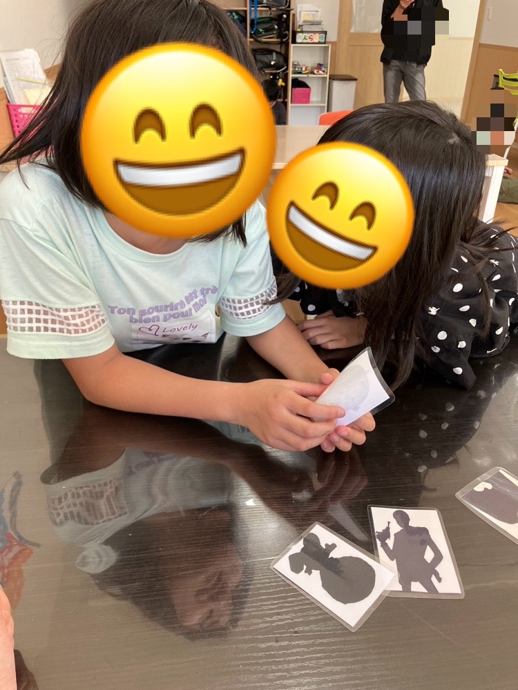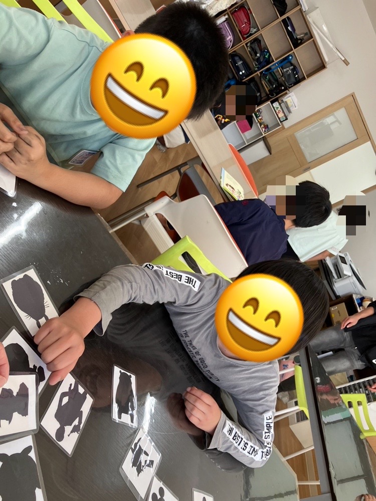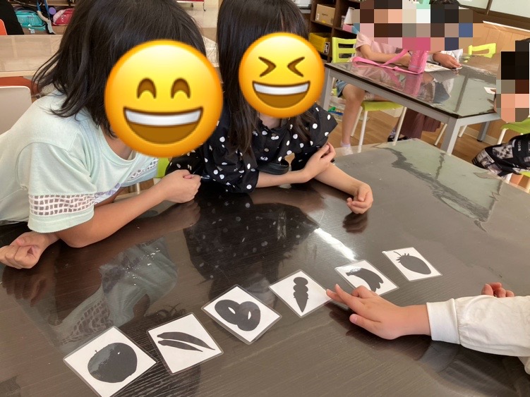 簡単な果物から始まり、ボールを使ったスポーツ!キャラクター等のシルエットカードを使って行いました⭐️