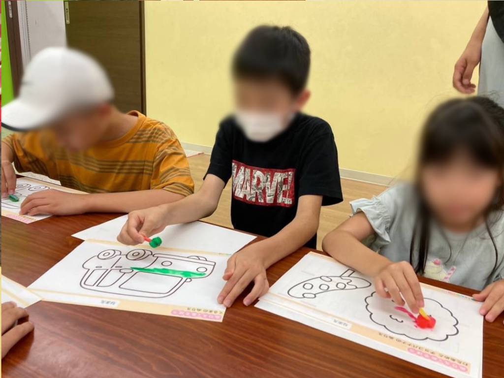 次第に溶けていく氷を上手に扱いながら、夏らしい上手な塗り絵をすることができました✨
